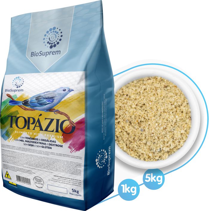 A farinhada BioSuprem TOPÁZIO é uma ração completa para pássaros granívoros e insetívoros, altamente palatável, com insetos desidratados e outras proteínas e carboidratos exclusivos.