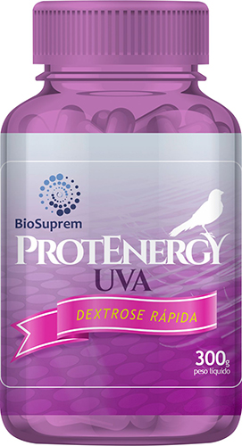 ProtEnergy Uva é um produto solúvel para ser utilizado como fonte de energia rapidamente metabolizável para períodos de stress, mudanças bruscas de temperatura, preparação para reprodução, campeonatos e torneios, nos quais o pássaro necessite aporte energético.